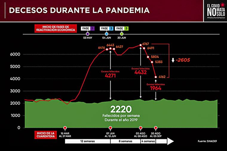 En tal sentido, señaló que en la última semana de agosto fallecieron 4,162 personas, que son 2,600 menos que en la primera semana de agosto (6,767).