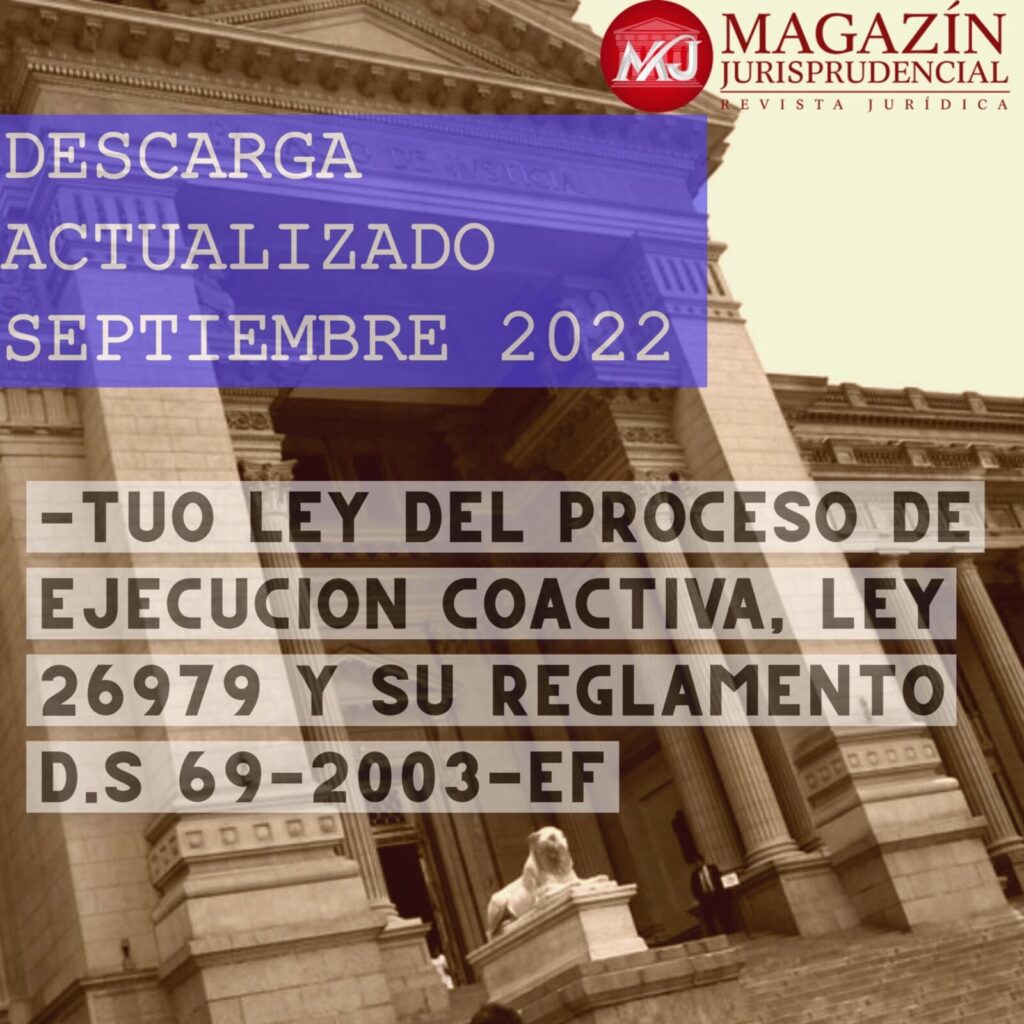 Magazín Jurisprudencial pone a disposición de todos sus seguidores en formato PDF el TUO de la Ley del Proceso de Ejecución Coactiva y su reglamento. Nuestra comunidad jurídica podrá descargar en formato PDF estos cuerpos normativos que estamos seguros les facilitará su labor jurídica. El acceso es libre y solo deberán dar clic al vínculo de cada cuerpo normativo que a continuación se presenta: